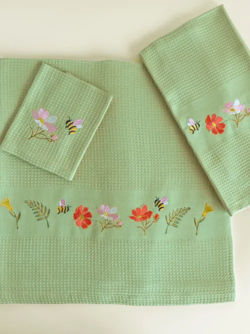 Morning Bloom Blue Embroidered Waffle Towel Set of 3 – Bath, Hand and Face