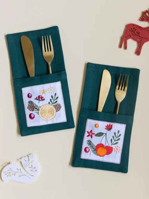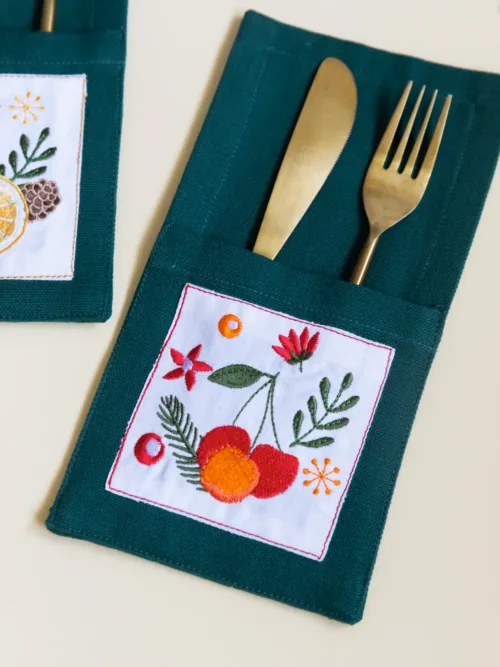 Spiced Cranberry Embroidered Cutlery Holders – Set of 2