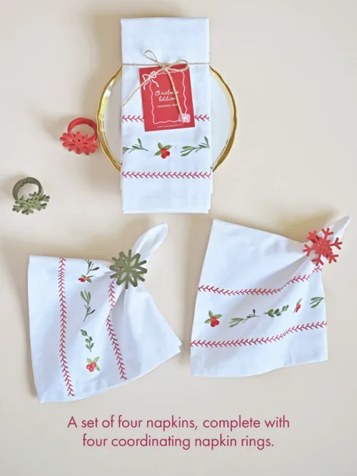 Bells and Baubles Festive Kerala Bath Towels with Gift Bag – Set of 2 – Thorth
