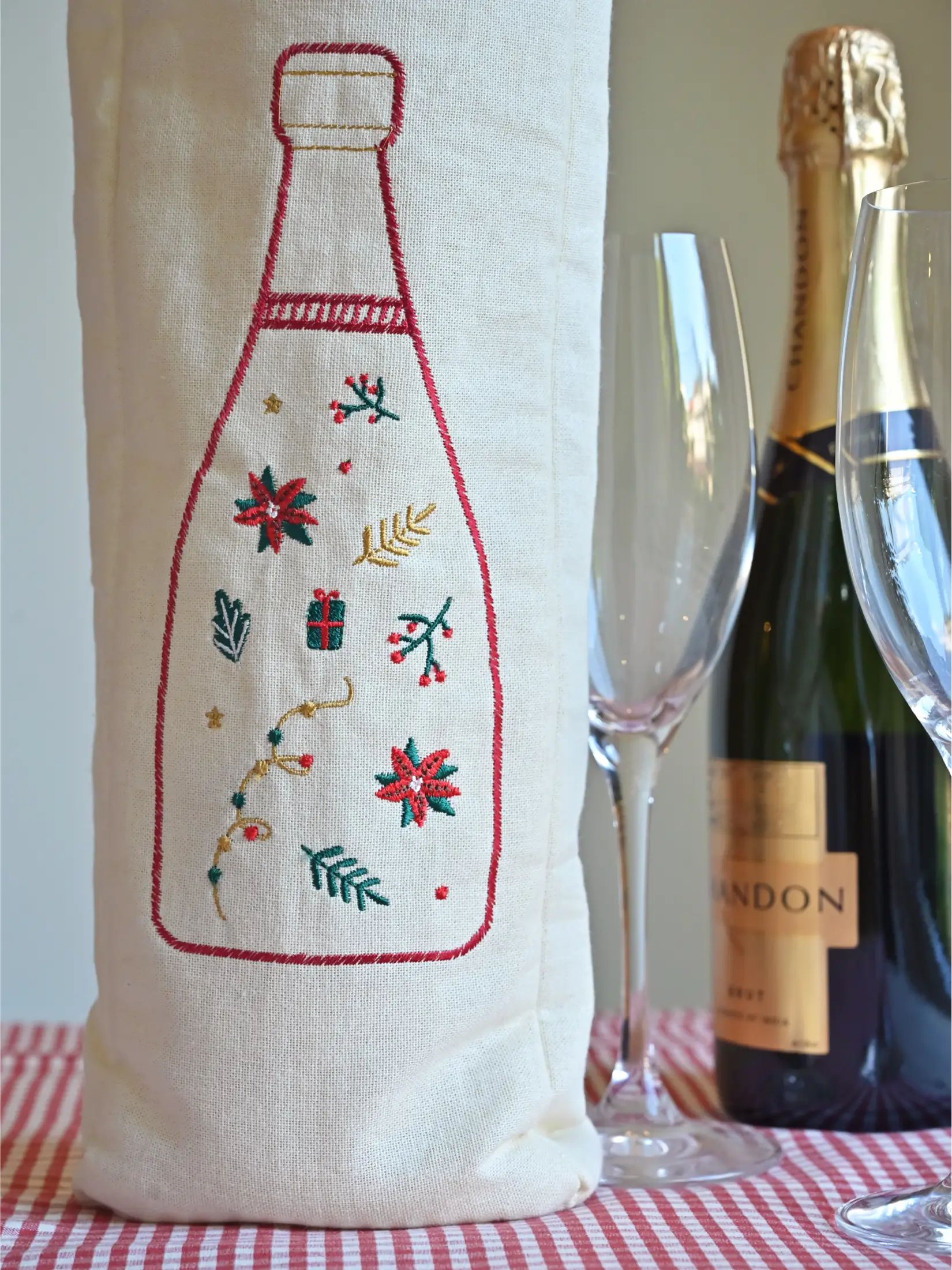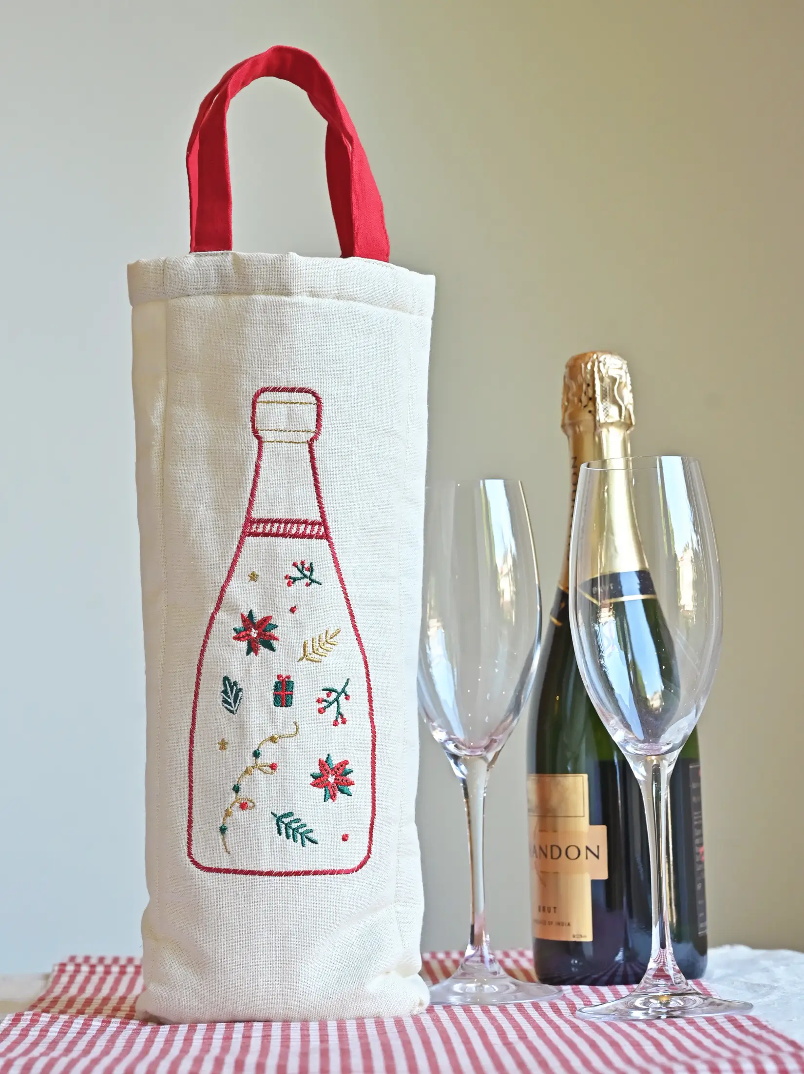 Make every gift feel special with the Celebration Bottle Gift Bag. Designed to hold wine or sparkling beverages, this embroidered cotton bag adds a festive touch to your holiday gifting. With sturdy handles and neatly finished edges, it’s both stylish and reusable — a thoughtful alternative to disposable wrapping and a keepsake long after the celebration ends.