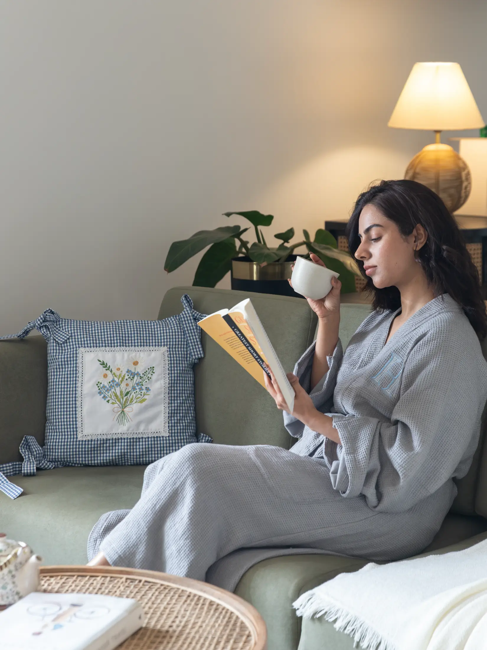 Finished in a soothing cloud gray tone, the robe can be custom monogrammed, making it a meaningful personal piece or a thoughtful gift. Custom made in Kannur, Kerala, it reflects a slow-living philosophy rooted in quality, longevity, and mindful craftsmanship.