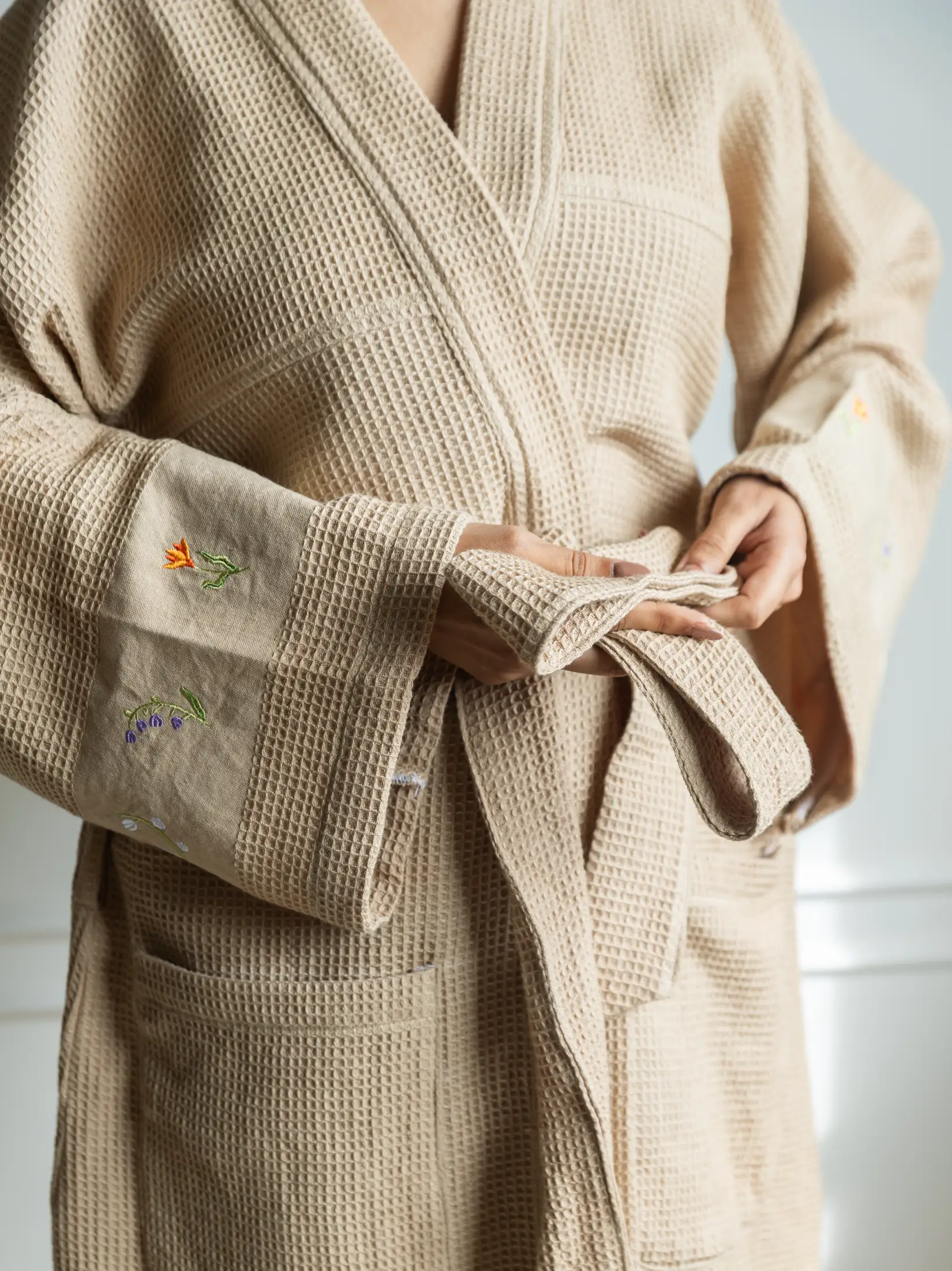 Designed for slow mornings and unhurried evenings, the French Beige Cotton Waffle Bath Robe is a quiet luxury essential for everyday rituals. Made from 100% breathable cotton waffle, the robe features a soft, textured weave that feels light on the skin while remaining absorbent and comfortable.